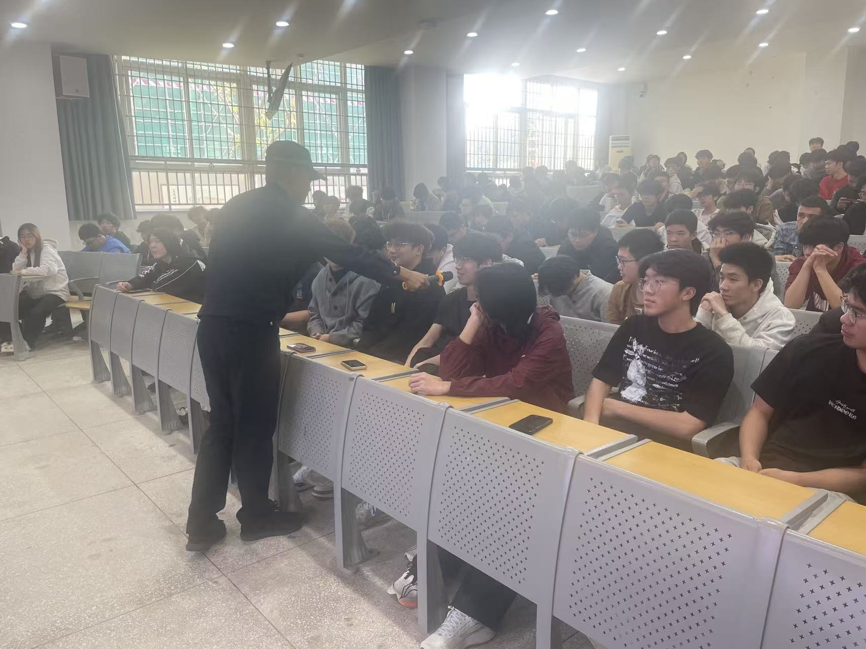 新店派出所倪东警官化身“案例拆解师”,把发生在我们身边的真实骗局摊开来讲,揭秘套路,深入剖析“刷单返利”“网络贷款”等常见骗局,详解识别反诈技巧与“三不一多”防骗口诀,并为兼职同学提供规避经济纠纷的专业建议,手把手教学如何“避坑”。现场互动热烈,同学们在问答中巩固知识,提升了识骗、防骗、拒骗能力。