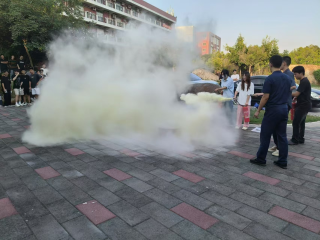 随后,大家来到敬贤山前方空地,开启灭火实操环节。在这里,消防宣讲员分别示范了灭火器以及消防栓的使用方法。同学们认真学习,积极参与实际操作,进一步掌握了灭火的基本技能。