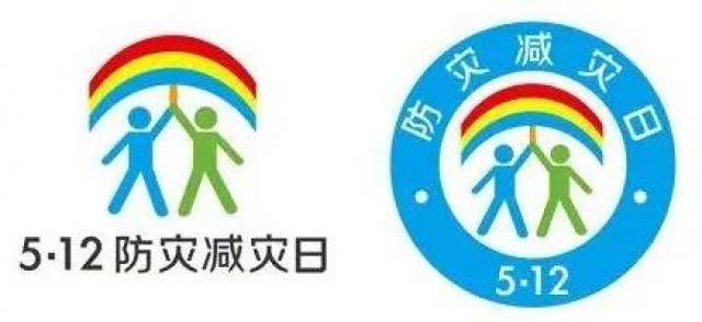 防灾减灾日的图标以彩虹、伞、人为基本元素,雨后天晴的彩虹寓意着美好、未来和希望,伞的弧形形象代表着保护、呵护之意,两个人代表着一男一女、一老一少,两人相握之手与下面的两个人的腿共同构成一个“众”字,寓意大家携手,众志成城,共同防灾减灾。整个标识体现出积极向上的思想和保障人民群众生命财产安全之意。