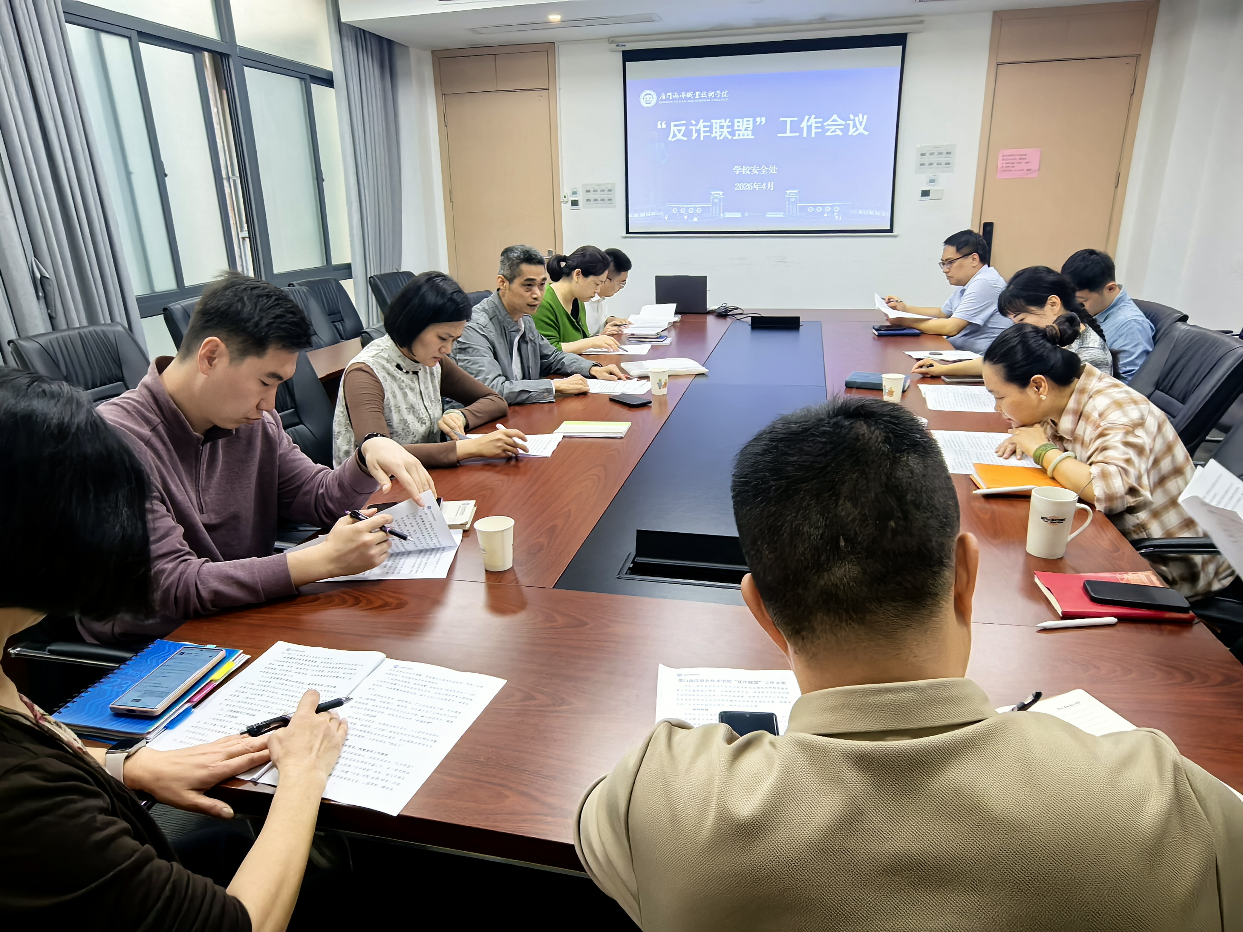 2026年4月1日上午,我校召开“反诈联盟”工作会议,专题部署校园防范电信网络诈骗工作。学校安全处、学工部、团委负责人及各二级学院负责学生工作的副书记出席会议。