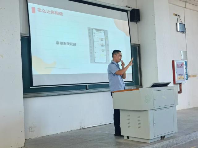 为有效应对当前日益严峻的电信网络诈骗犯罪态势,切实提升全校师生的安全防范意识与识诈、防诈、反诈能力,6月10日下午,安全处邀请厦门市公安局新店派出所校园警官倪东在翔安校区梯四教室为同学们讲解高校学生防骗安全课。