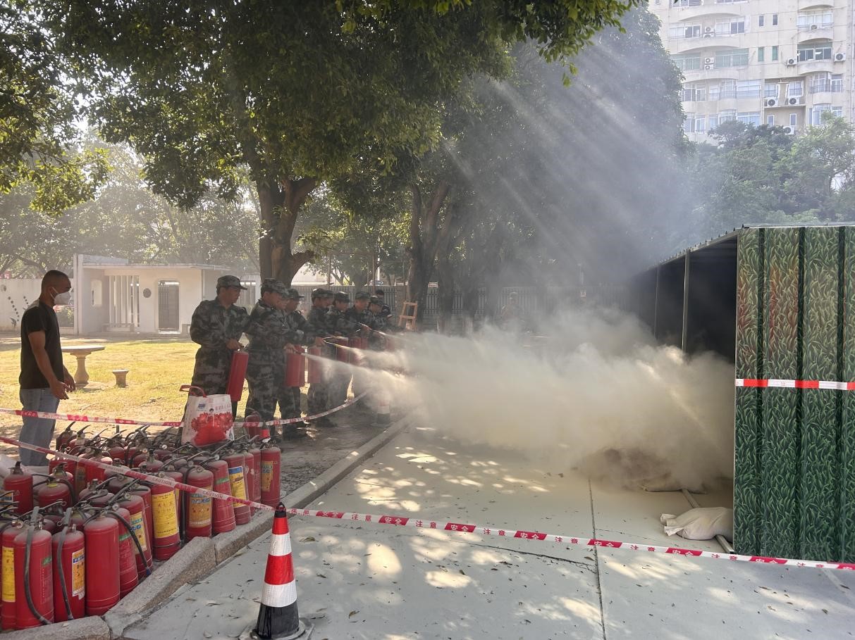 在消防技能演练警戒区域内放置火盆,全体2025级学生开展了灭火技能训练。在吸收理论知识的基础上,同学们手持干粉灭火器,轮流使用灭火器灭火。经过亲身体验,参与的同学们纷纷表示受益匪浅,熟练掌握了灭火器的正确使用方法。