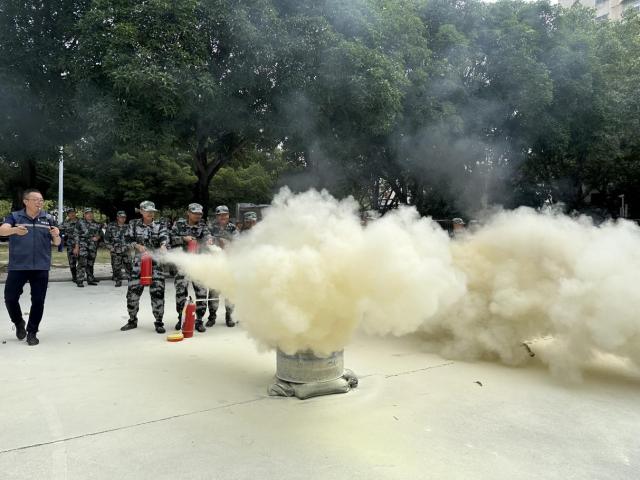 在消防技能演练警戒区域内放置了四个火盆,全体2024级学生开展了灭火技能训练。在吸收理论知识的基础上,同学们手持干粉灭火器,轮流使用灭火器灭火。经过亲身体验,参与的同学们纷纷表示受益匪浅,熟练掌握了灭火器的正确使用方法。