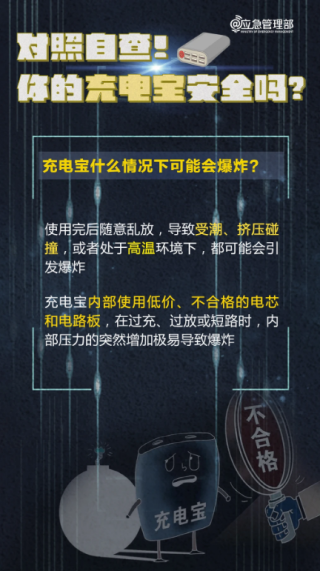2023年1月,广西桂平一自建民房凌晨突发大火,屋内一家四口不幸遇难。经初步调查,起火原因为移动电源发生短路引起火灾。现场勘验发现该移动电源疑似为伪劣产品。