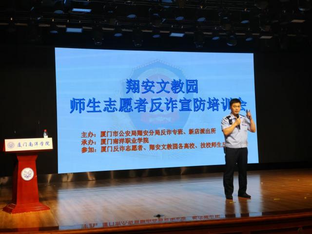 为进一步推进学校反诈宣传教育工作,提高学校师生(反诈宣传志愿者)防骗意识和识别能力,525日,2022年度翔安文教园师生志愿者反诈宣传专题培训会在南洋学院举行,我校组织反诈宣传志愿者参加