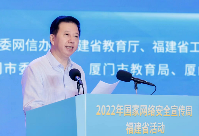 厦门作为2022年国家网络安全宣传周福建省活动开幕式的承办城市,厦门市委常委、宣传部部长吴子东代表厦门市委、市政府致辞。
