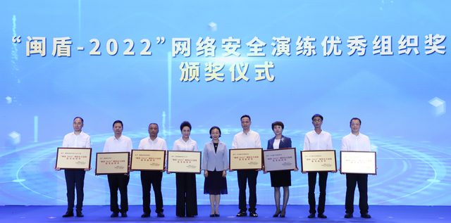 郭宁宁为“闽盾-2022”网络安全演练优秀组织奖单位颁奖