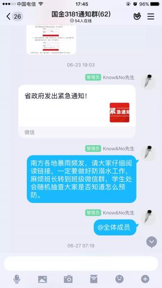 工商系辅导员赵世一、程欣然、刘飞等多位老师通过微信群、QQ群、电话等多种渠道,摸排学生安全动态,向学生传输安全知识。他们第一时间传达文件精神,通知每位同学务必认真阅读并加强防范,随后组织各班学生骨干加强宣传,督促保证每位同学收到并查看,在后续工作中,持续对学生进行安全教育的提示,提高学生安全意识。