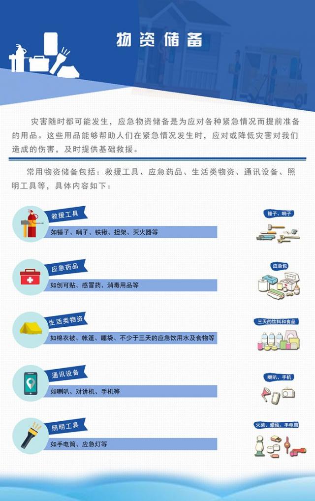 面对突发灾害,应常备各类应急物资: